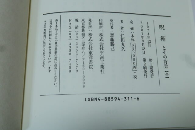 呪術とその背景 仁田丸久氏 東洋書院