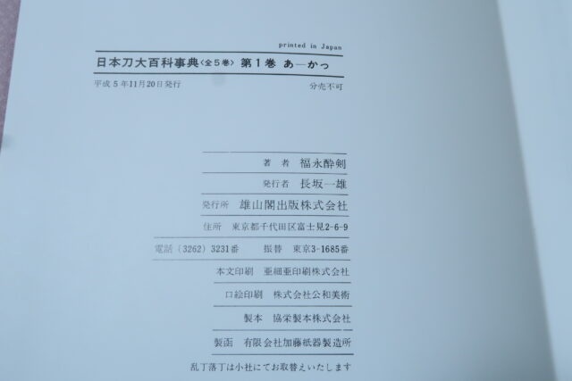 日本刀大百科事典・5冊 福永酔剣
